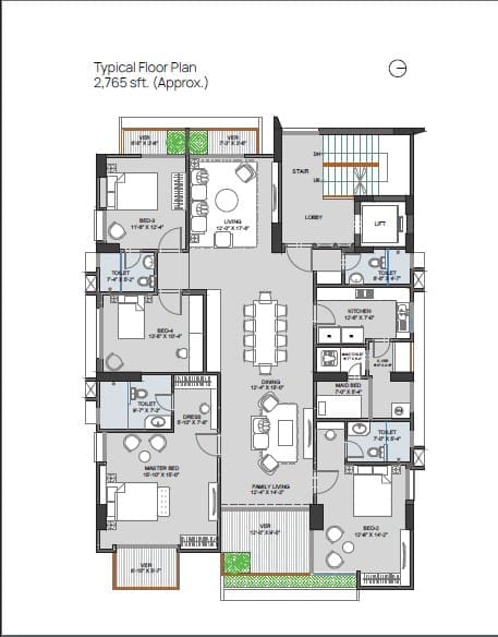 Unit Type: 4 Bedrooms + Maid's Room layouts
