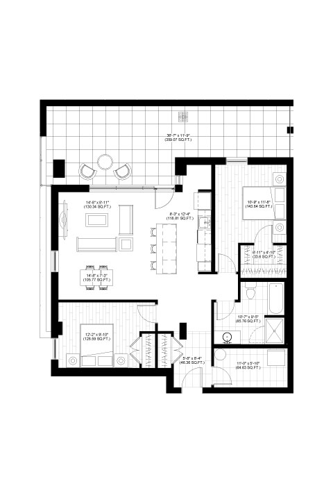 This C4 unit (Unit 810) features a spacious 1,042 sq ft layout with 2 well-appointed bedrooms and 1 full bathroom, making it ideal for professionals, couples, or small families. The intelligently designed floor plan maximizes both living and storage space, while large windows allow abundant natural light to fill the interiors, creating a bright and inviting atmosphere.