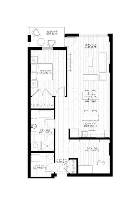 1 Bedroom + Den | 1 Bathroom | Area: 997 Sq Ft