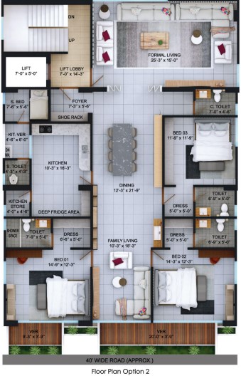 The apartment boasts an expansive 2,818 sq ft layout , offering 4 spacious bedrooms , 4 bathrooms , formal and family living areas , and a dedicated dining space. The layout is designed to provide maximum comfort, featuring premium finishes like mirror-polished floor tiles and solid Chittagong Teak entrance doors.